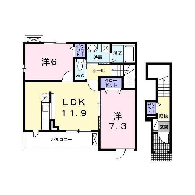 | 間取り | 2LDK(洋6・洋7.3・LDK11.9) | 主要採光面 | - |
